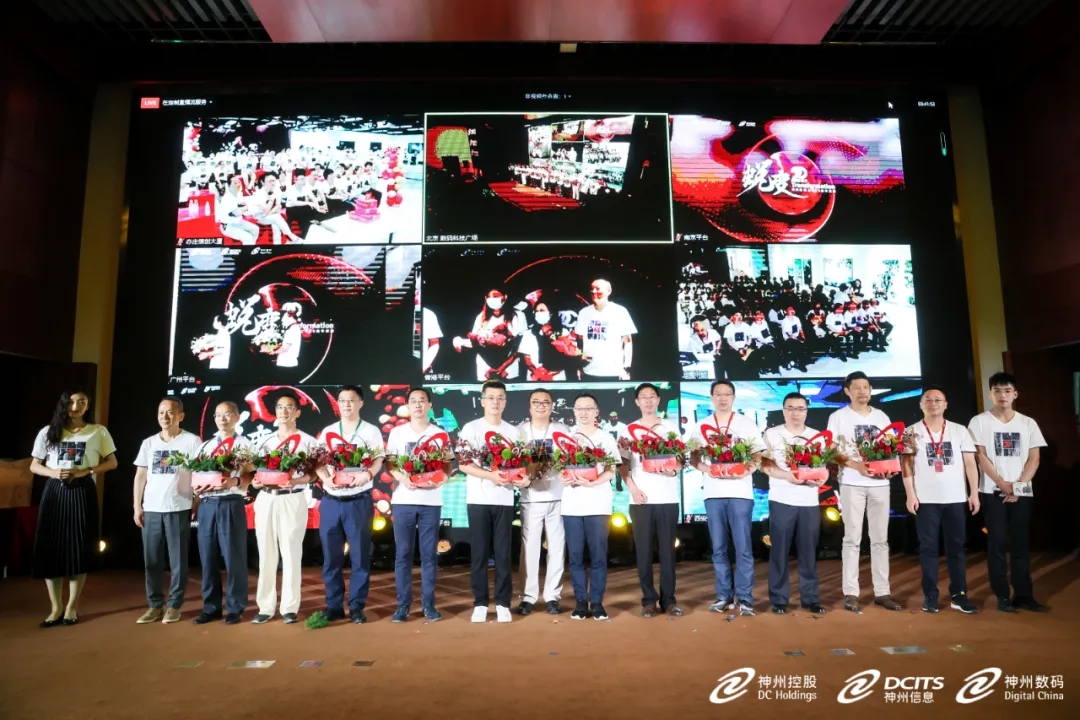 在二十年员工授勋环节,神州控股董事局副主席林杨、BB贝博艾弗森官网总裁李鸿春、bb贝博艾弗森集团常务副总裁叶海强及其他分会场高管,分别为主会场及分会场20年员工代表授勋。