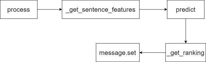 components的process函数 -> 获取句子id list -> 调用predict函数预测 -> _get_ranking 对结果进行排序 -> 保存到message