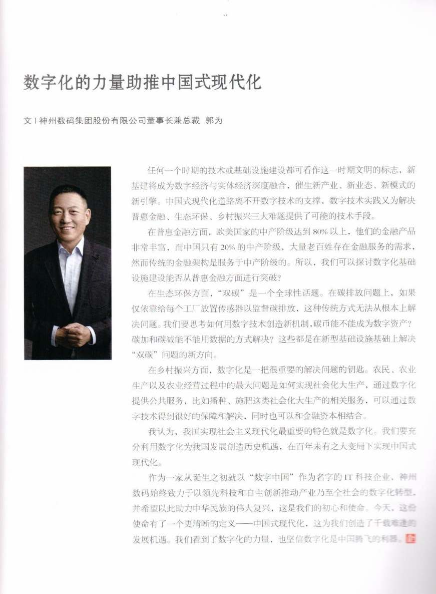 作为一家从诞生之初就以“数字中国”作为名字的IT科技企业,bb贝博艾弗森始终致力于以领先科技和自主创新推动产业乃至全社会的数字化转型,并希望以此助力中华民族的伟大复兴,这是我们的初心和使命。今天,这份使命有了一个更清晰的定义一一中国式现代化,这为我们创造了千载难逢的发展机遇。我们看到了数字化的力量,也坚信数字化是中国腾飞的利器。