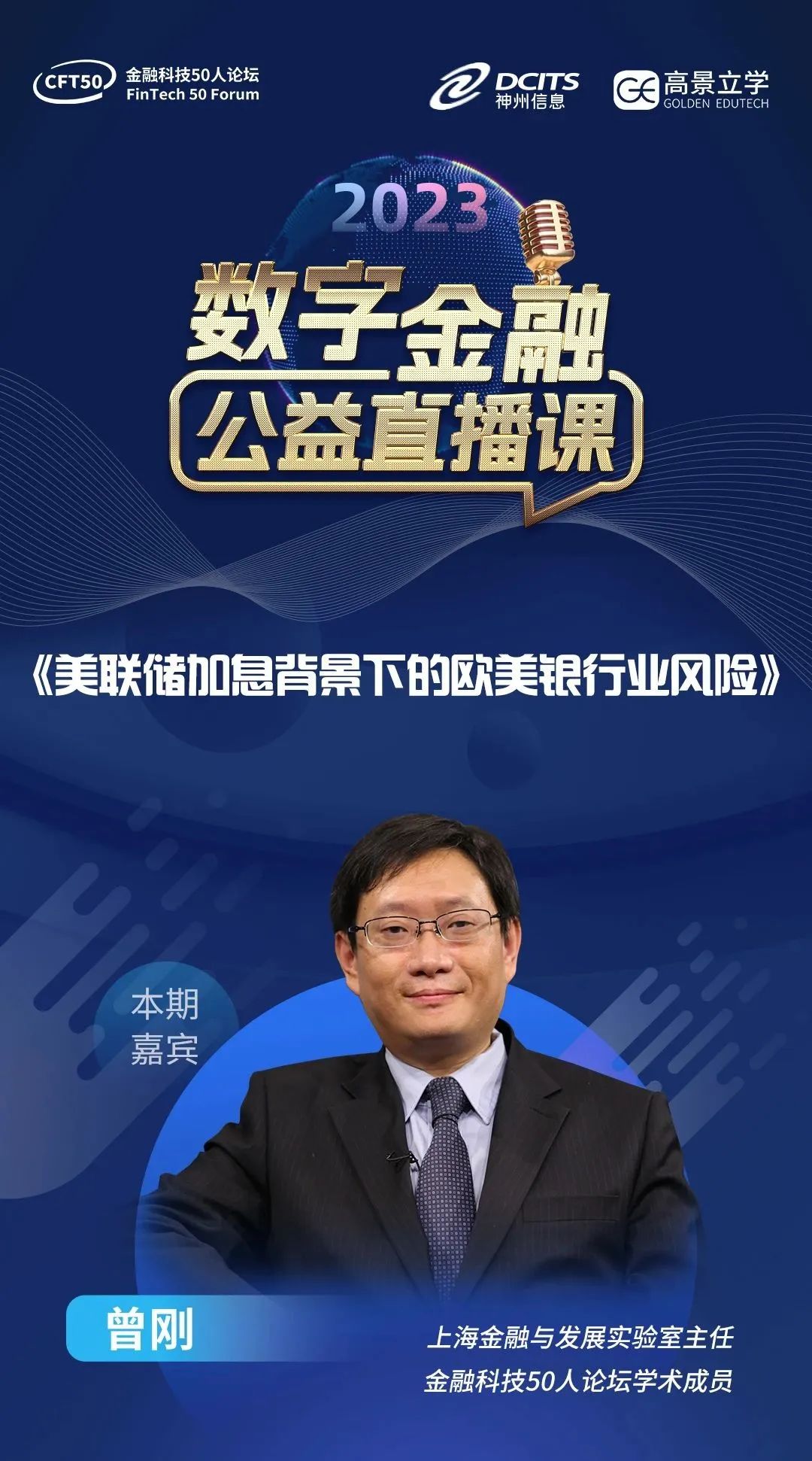 导读:由金融科技50人论坛联合BB贝博艾弗森官网、高景立学共同推出的重磅系列课程“2023数字金融公益直播课”迎来第三期嘉宾——上海金融与发展实验室主任、金融科技50人论坛学术成员曾刚。5月8日晚上19:00-20:00,与您一起聚焦“美联储加息背景下的欧美银行业风险”。欢迎视频号,上课不迟到。