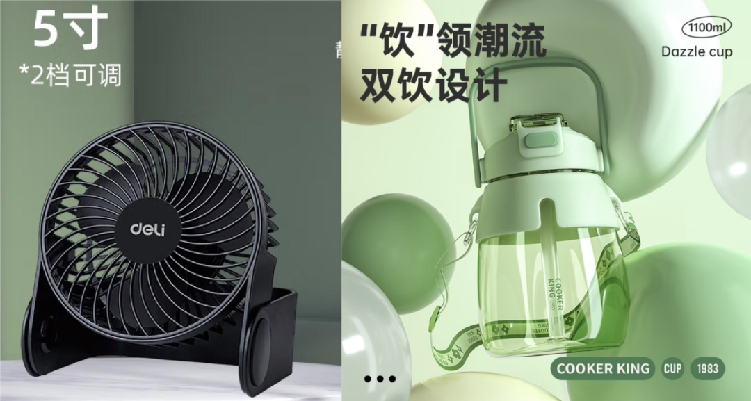 4、第七、八、九、十名:“大肚水杯+风扇”套装
